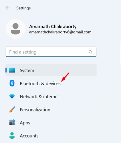 2。に切り替えますBluetooth&Devices。