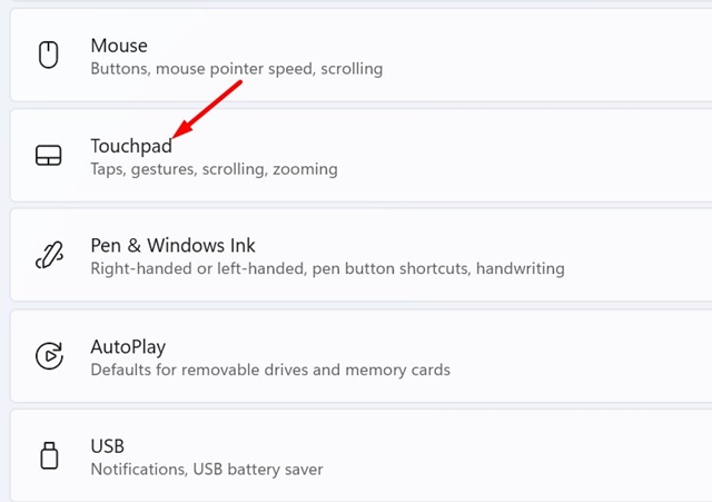 3。をクリックしますタッチパッド。