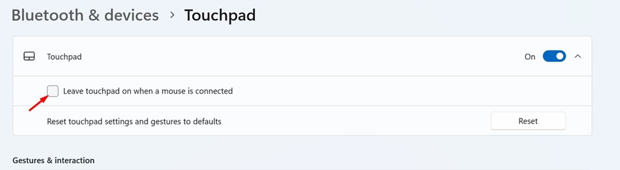 4。チェックを解除します「マウスが接続されているときにタッチパッドを残してください」オプション。