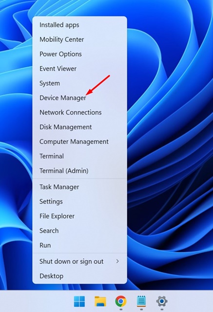 1. [スタート]ボタンを右クリックするか、Windowsキー + Xキーを押して、パワーユーザーメニューを開きます。パワーユーザーメニューが開いたら、選択しますデバイスマネージャ。