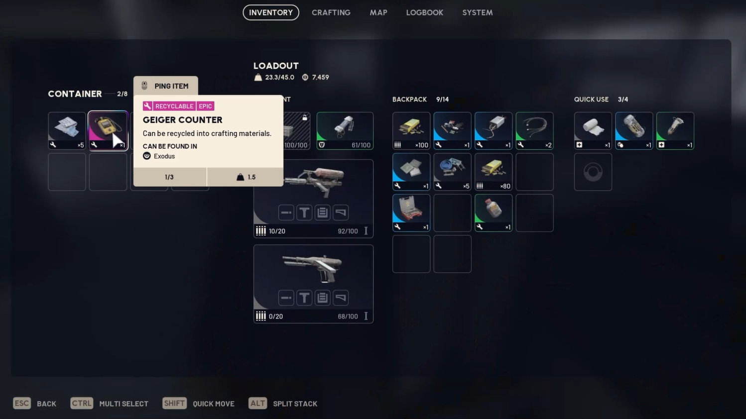 - ガイガーカウンターはバッテリーやエクソダスモジュールへのリサイクルに最適です。
