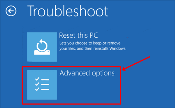 4. 高度なスタートアップメニュー、選択トラブルシューティングオプション。