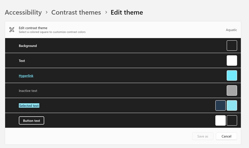 4. [コントラスト テーマ] ドロップダウンをクリックし、リストからいずれかを選択します。をクリックします。編集ボタンをクリックしてテーマを変更します。