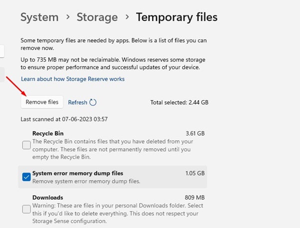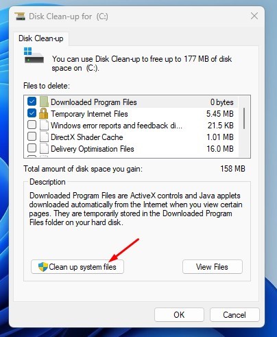 3. をクリックします。システムファイルをクリーンアップする。