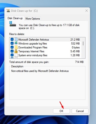 ディスク クリーンアップ ユーティリティが実行され、不要なシステム ファイルがすべて削除されます。