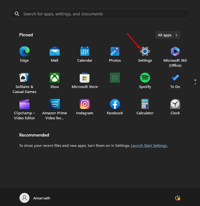 1. Windows 11のスタートボタンをクリックし、設定。