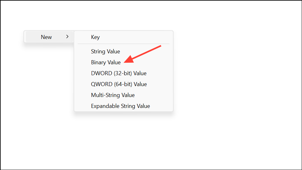 ステップ3:右ペインを右クリックして選択しますNew > Binary Value。新しい値に名前を付けますScancode Map。