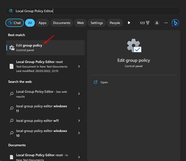 1. [Windows 11 検索] をクリックして次のように入力します。ローカルグループポリシーエディター.