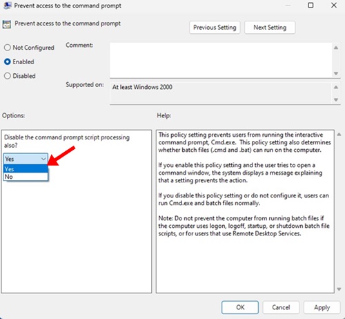 変更を加えた後、ローカル グループ ポリシー エディターを閉じ、コンピューターを再起動します。再起動後は、コマンド プロンプトに再度アクセスできなくなります。