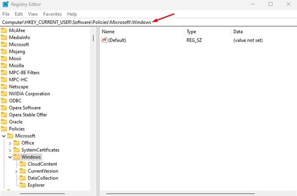HKEY_CURRENT_USERSoftwarePoliciesMicrosoftWindows