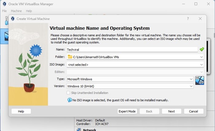 9. 名前を付けます新しい仮想マシンをクリックし、仮想マシンのインストール フォルダーと、インストールするオペレーティング システムの ISO ファイルを選択します。