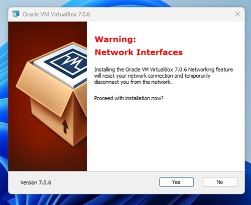 4. ネットワーク インターフェイスの警告が表示されます。をクリックしてくださいはい。これにより、インターネットから一時的に切断されます。