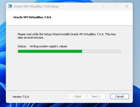 6. VirtualBox がコンピュータにインストールされるまで待ちます。