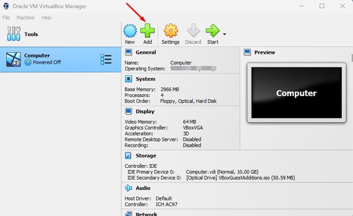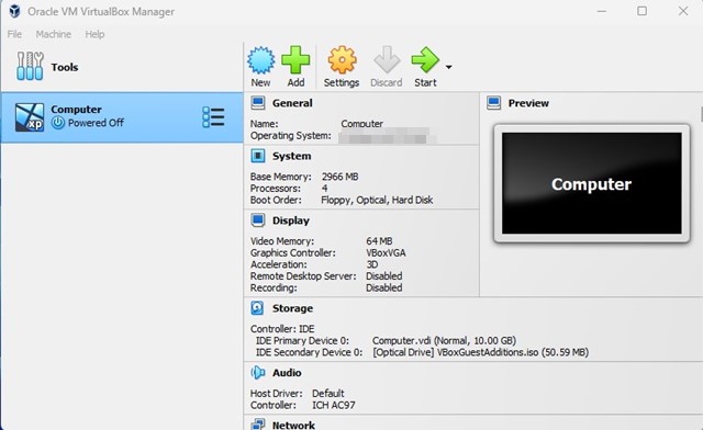 7. インストールしたら、開きますバーチャルボックスコンピュータの [スタート] メニューから。同様の画面が表示されます。