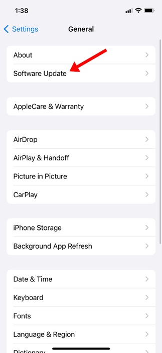 高度な追跡と指紋保護をオンにするオプションが見つからない場合は、ソフトウェアアップデートからiPhoneを更新する必要があります。