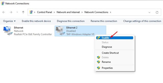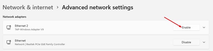 5。ネットワークアダプターを有効にするには、クリックします有効にする。