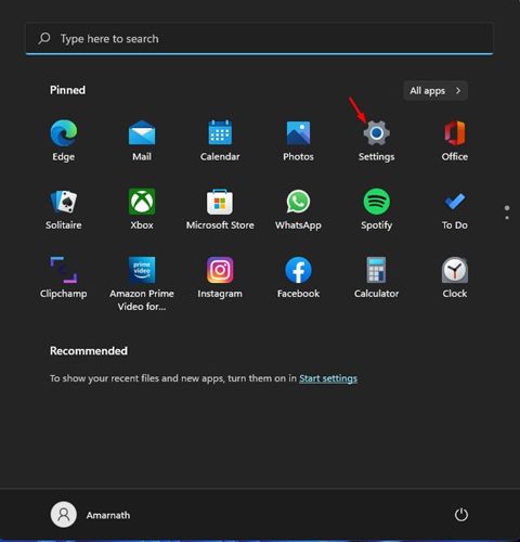 1。Windows11の開始ボタンをクリックして選択します設定。