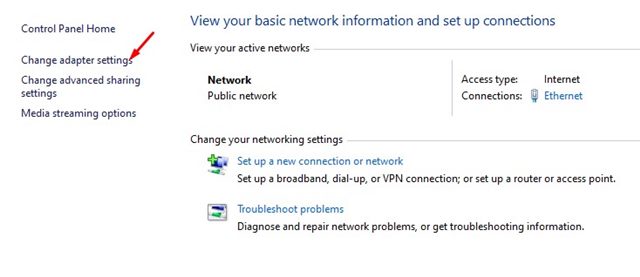 4。クリックしますアダプター設定を変更しますリンク。
