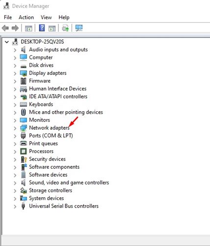 3.デバイスマネージャーを介してネットワークアダプターを無効/有効化します