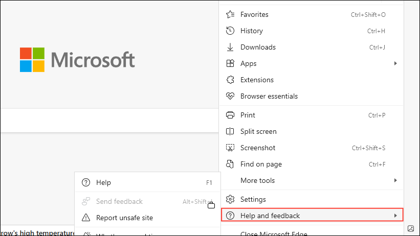 - ドロップダウンメニューにヘルプとフィードバックをホバリングします。
