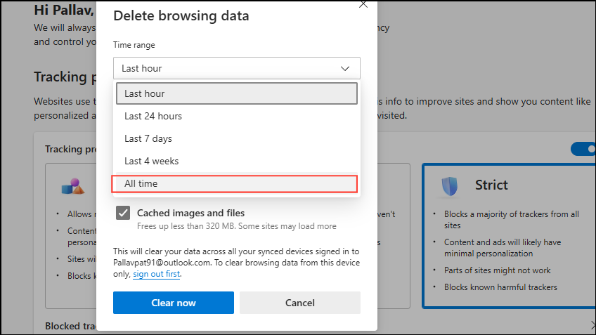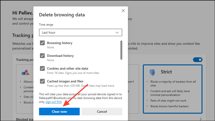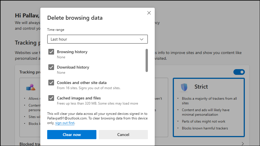 破損したキャッシュまたはCookieは、Copilotがどのように動作するかを妨げる可能性があります。それらをクリアすると、問題が解決する場合があります。