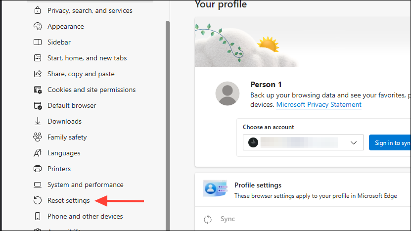 新しいプロファイルでCopilotを使用してみてください。動作する場合は、Microsoftアカウントにサインインしてデータを同期できます。
