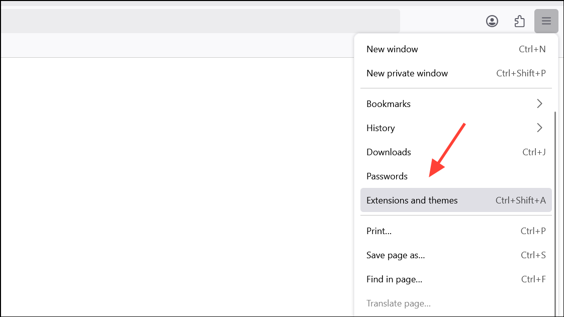 ステップ1:[メニュー]ボタンをクリックして、選択しますExtensions and Themes次に、インストールされている拡張機能とテーマを確認します。