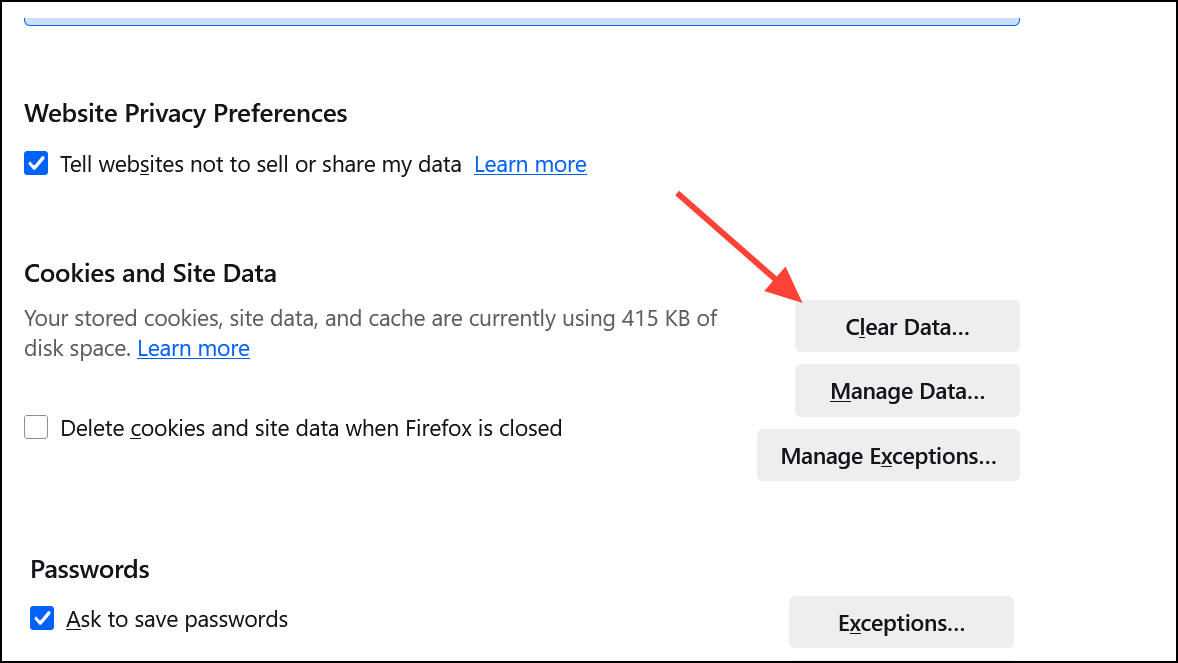 Firefoxキャッシュとサイトデータをクリアします