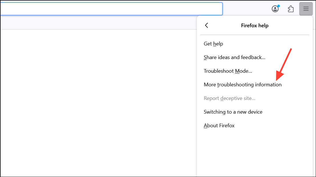 ステップ1:[メニュー]ボタンをクリックして、に移動しますHelp > More Troubleshooting Information。
