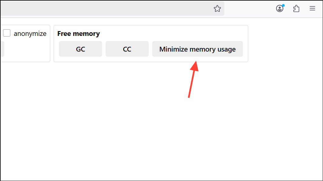 ステップ3:を使用しますMinimize memory usageFirefoxに未使用のメモリを解放するように促すボタン。