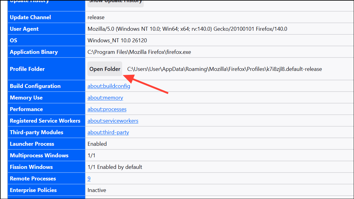 ステップ1:開けるHelp > More Troubleshooting Information。下Application Basics、 探すProfile FolderクリックしますOpen Folder。