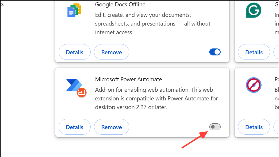 ステップ2:それらを切り替えて、すべての拡張機能を無効にします。