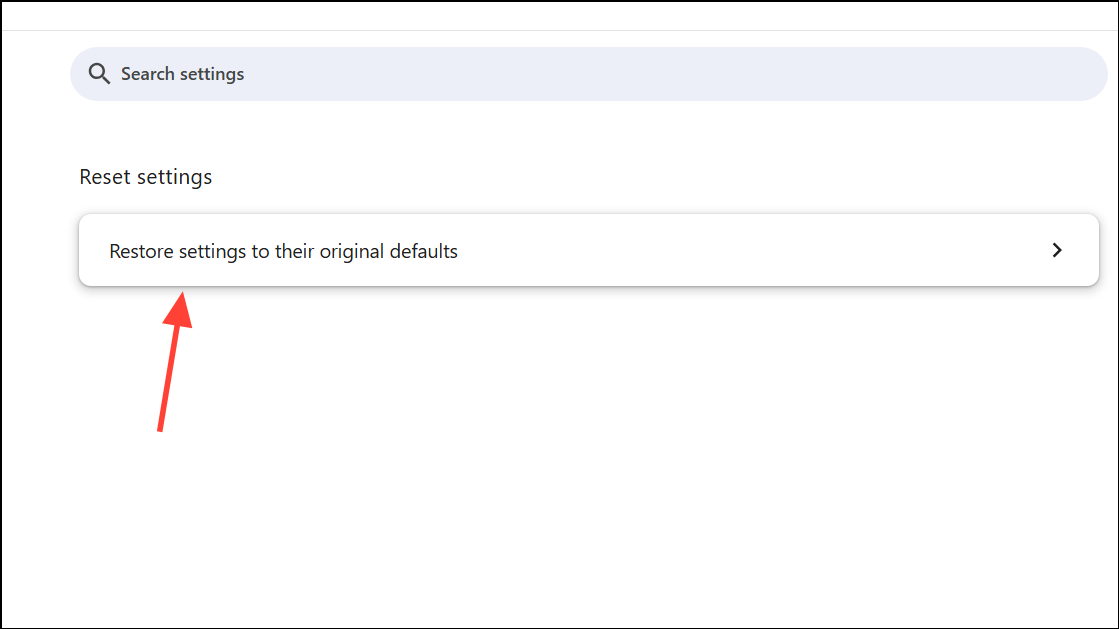 ステップ1:Chromeをリセットするには、開きますSettings、にスクロールしますReset settings、および選択しますRestore settings to their original defaults。リセットを確認します。