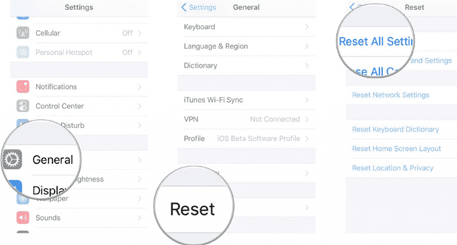 2. その後、ヒットしますリセットボタン。次に、タップするだけですすべての設定をリセットしますオプション。