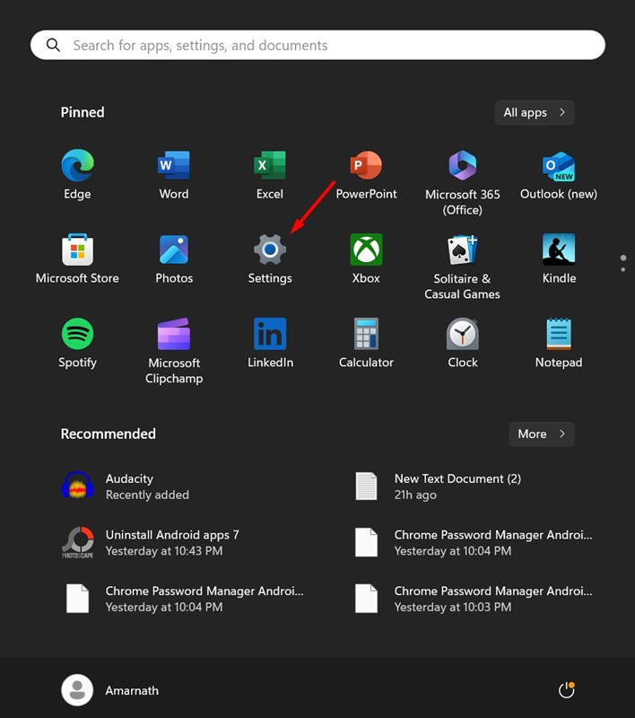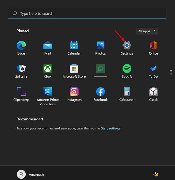 1. Windows 11の[スタート]メニューを開き、選択します設定。