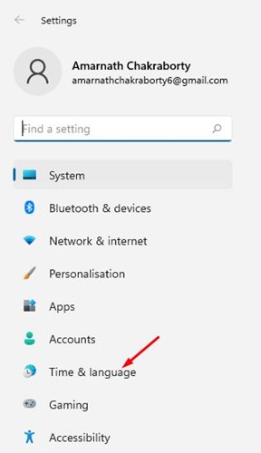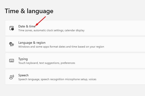 2。をクリックします時間と言語左ペインのオプション。