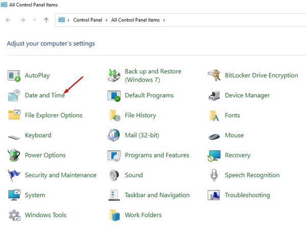 3。をクリックします日付と時刻以下に示すように。