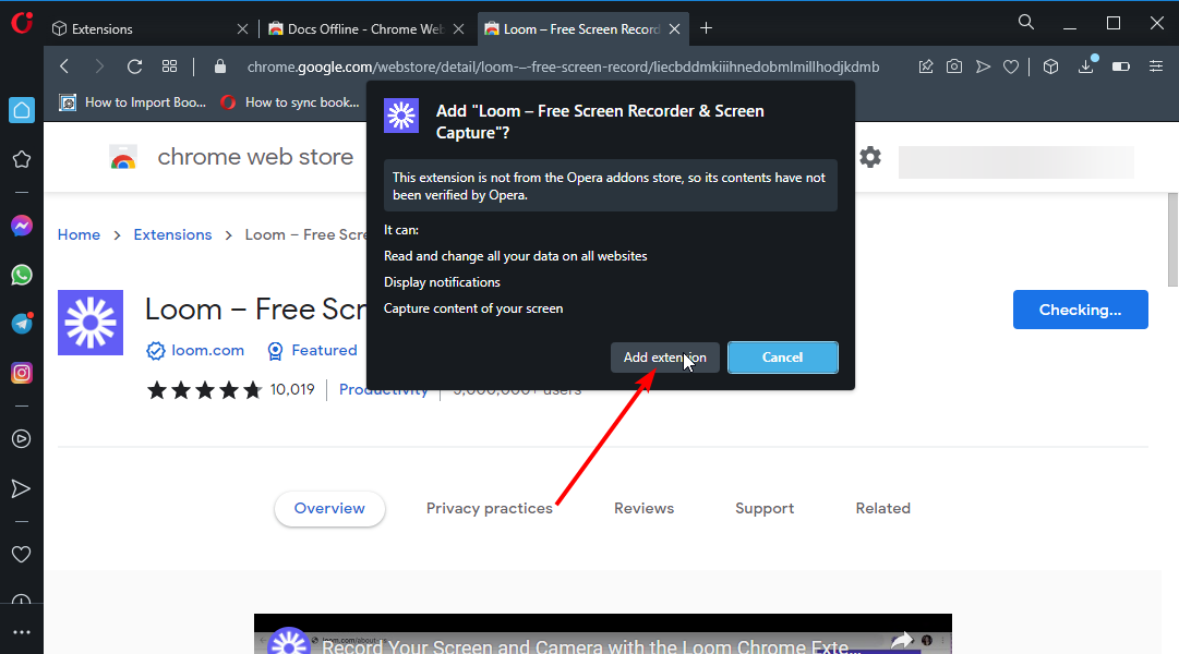 5. クリック拡張機能を追加します拡張機能がオペラからではないことを促したとき。