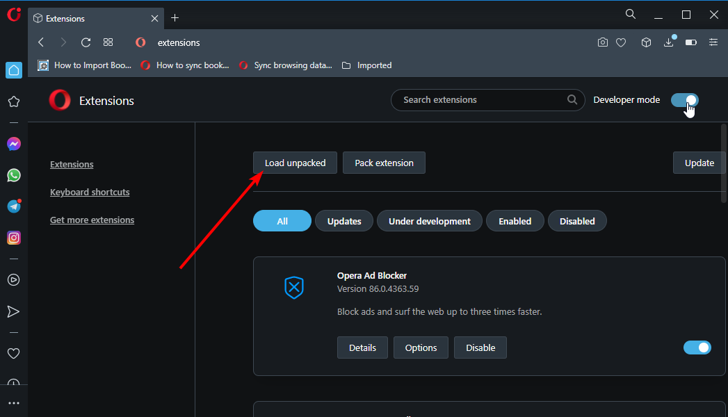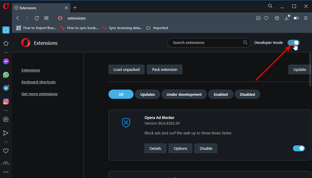 6. 拡張機能をインストールした後、押しますCtrl+シフト+eOperaを開くには、1つの拡張設定を開きます。