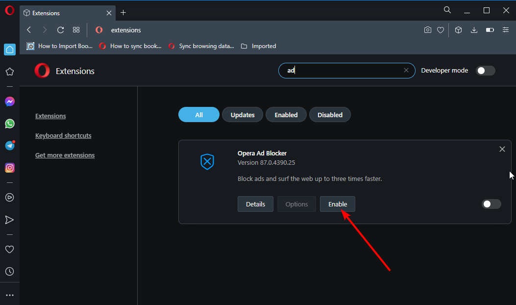 Opera Oneの拡張機能を有効にするにはどうすればよいですか?
