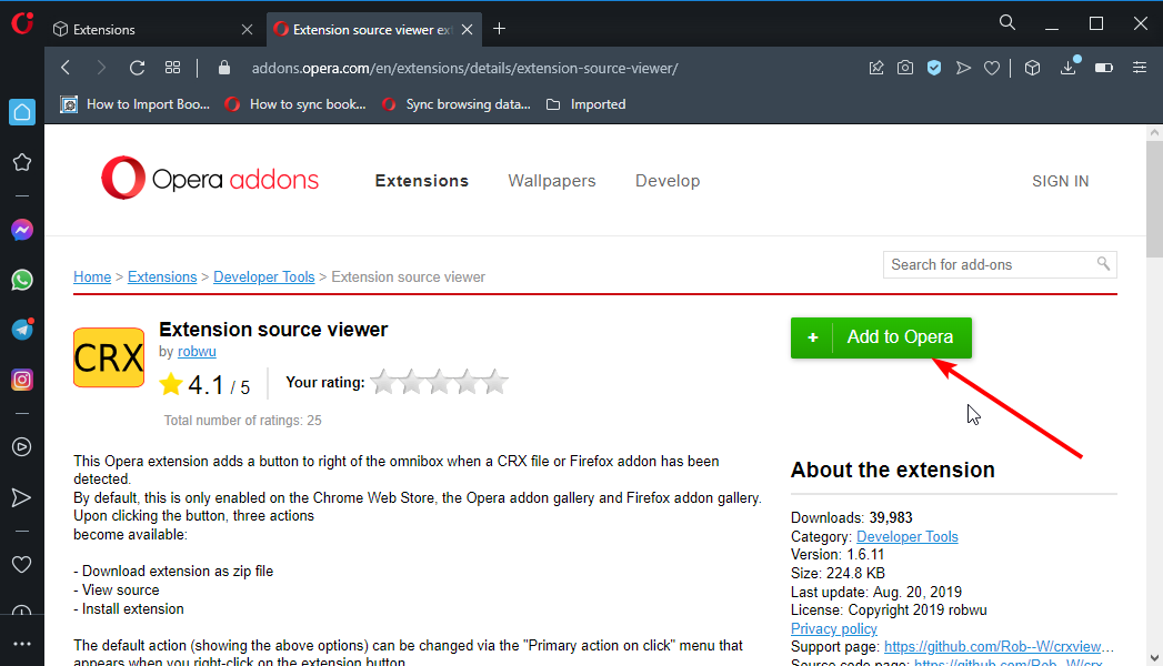 3. さて、オペラ1のクロムウェブストアに行きますインストールします拡張ソースビューアー