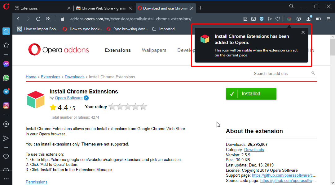 オペラブラウザにクロム拡張機能を追加できる3つの異なる方法を以下に示します。