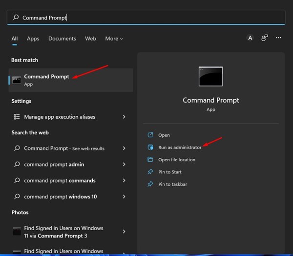 1. Windows 11 検索を開き、「コマンド プロンプト」と入力します。次に、コマンド プロンプトを右クリックし、管理者として実行オプション。