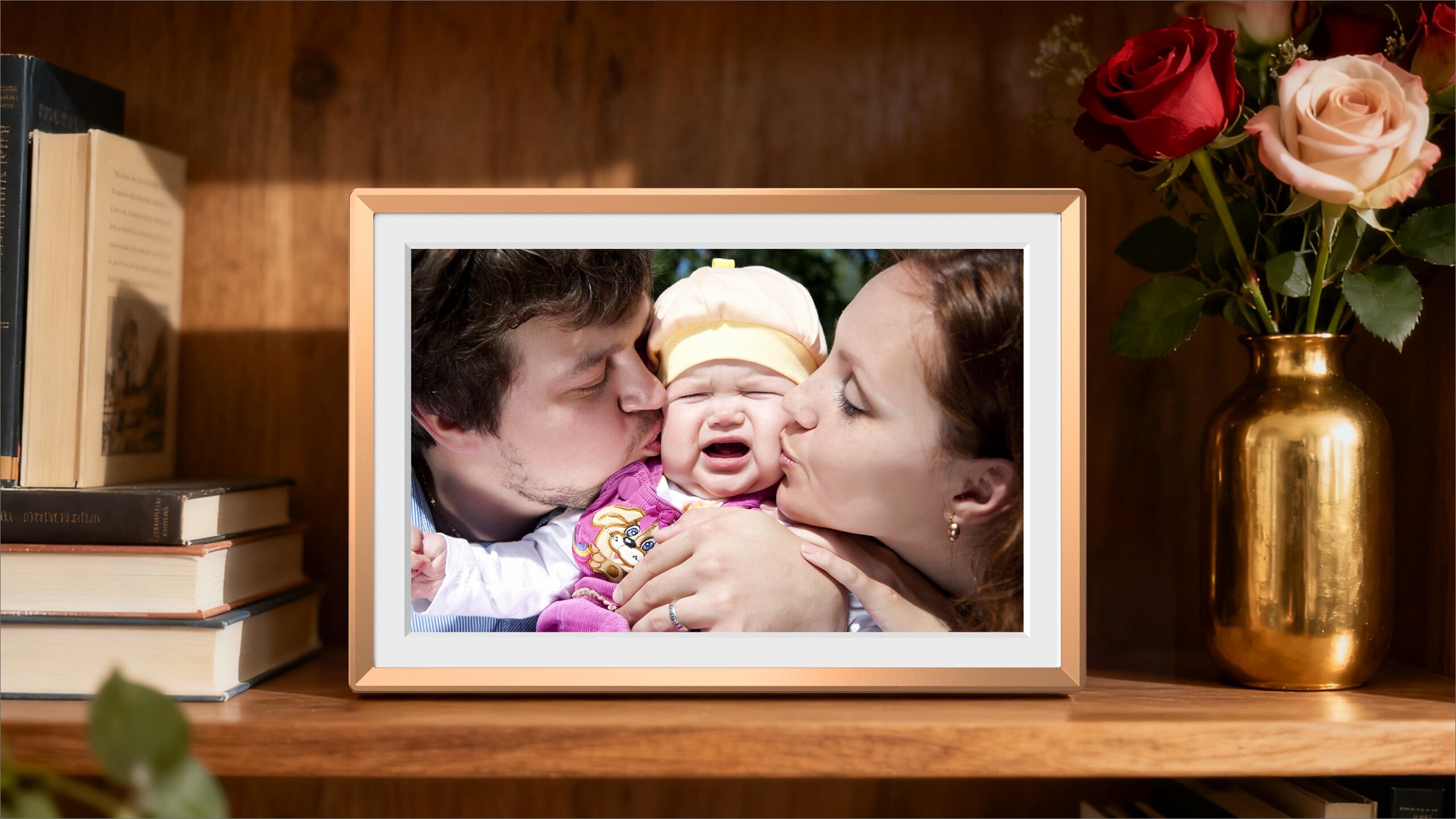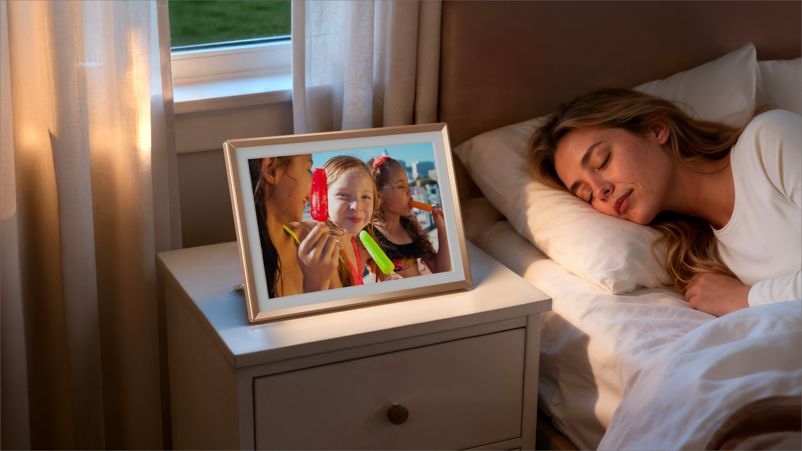 アプリを通じて写真に「いいね!」したり、コメントを残したりできるので、家族が小さなリアクションを共有し、遠くからでもつながりを保つことができます。フレームのタイムライン ビューではアップロードを時系列に整理し、カスタム フォルダーを使用してアルバムを旅行、イベント、家族ごとに分けることができます。