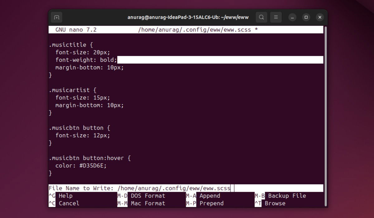デフォルトでは、EWWは構成ディレクトリを探します。そこには、少なくとも2つのファイルを作成します。 1つは、ウィジェット定義(eww.yuckと呼ばれることが多い)とスタイリング用(eww.scssまたは.cssという名前)用です。 Yuckファイルは、ウィジェットとWindowsを宣言する場所であり、SCSS/CSSファイルはスタイルを置く場所です。