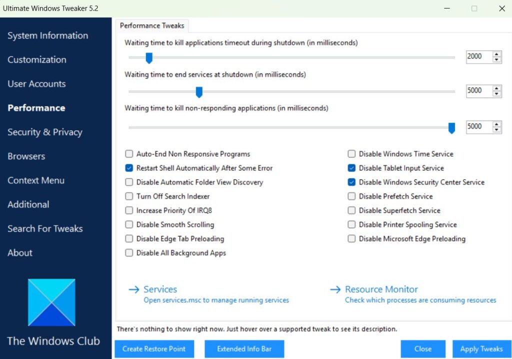 一部のオプションはシステムの奥深くに隠されており、特定の機能は強制的に感じられ、その他の機能は完全に欠落しています。そこで、次のような小さなツールが登場します。究極の Windows ツイーカー 5Windows Clubから参加します。