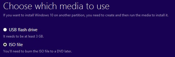2。クリック "次「。それを起動すると、2つのオプションがあります。USBフラッシュドライブを起動可能にしてWindowsをインストールできるようにするか、ISOファイルを取得します。ここでは、USBフラッシュドライブを使用することをお勧めします。